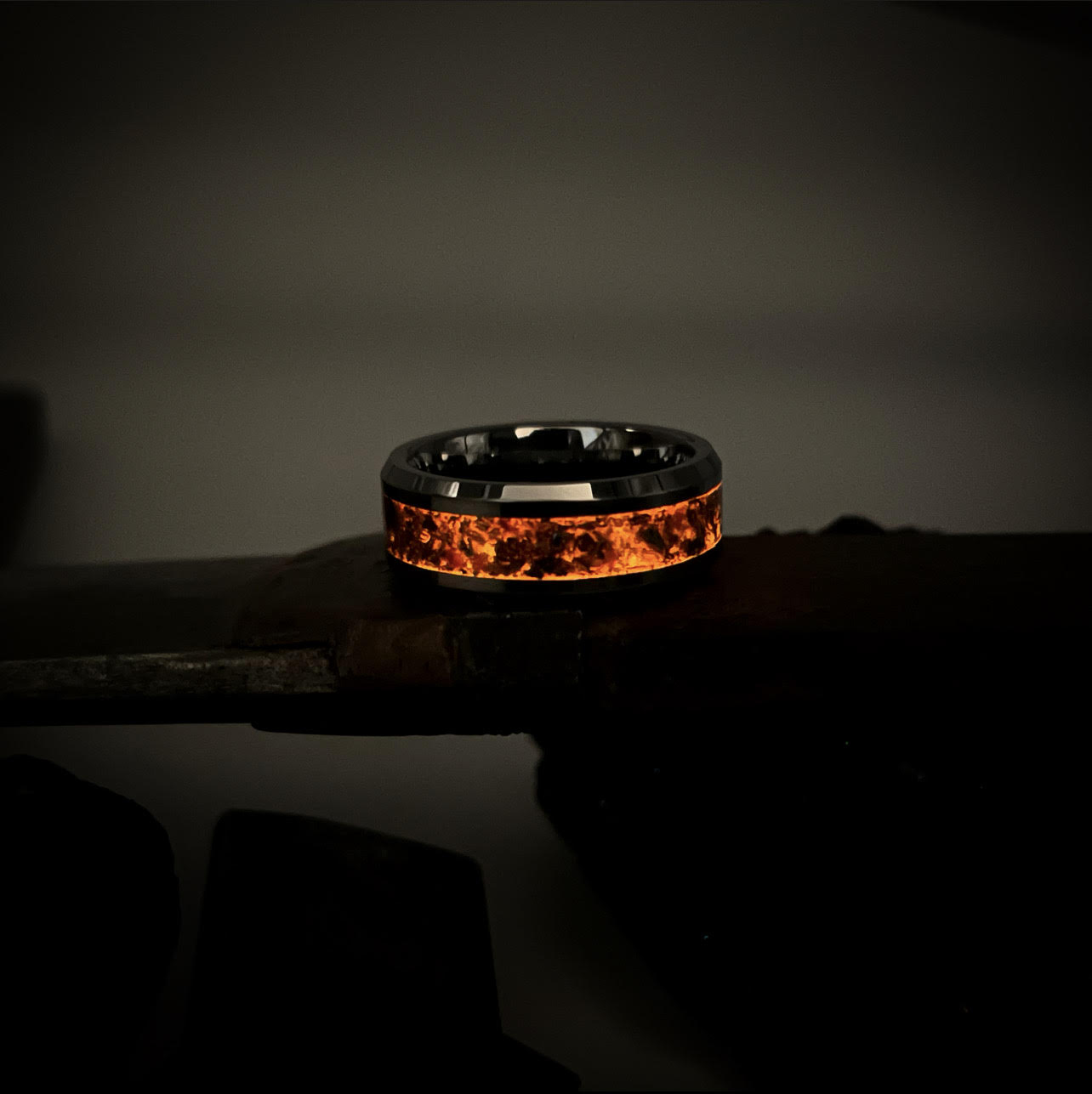 and finely ground volcanic ash from Iwo Jima. Next we add a thin layer of Elite Shungite Dust. This gives the texture a unique metallic depth effect. Lastly we mix in our signature fire glow—blazing with subtle hints of orange and red.
